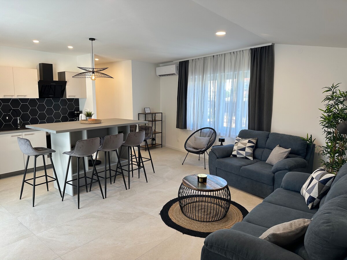 새롭게 개조된 현대적인 4성급(****) 아파트로 2명이 머물 수 있으며 에어컨 2개와 무료 와이파이가 갖춰져 있습니다. 중심지와 해변에서 도보로 단 몇 분 거리에 있습니다. 멋진 바다 전망과 와인 한 잔을 즐기며 낭만적인 석양을 감상하기에 이상적인 초대형 전용 테라스가 있습니다.