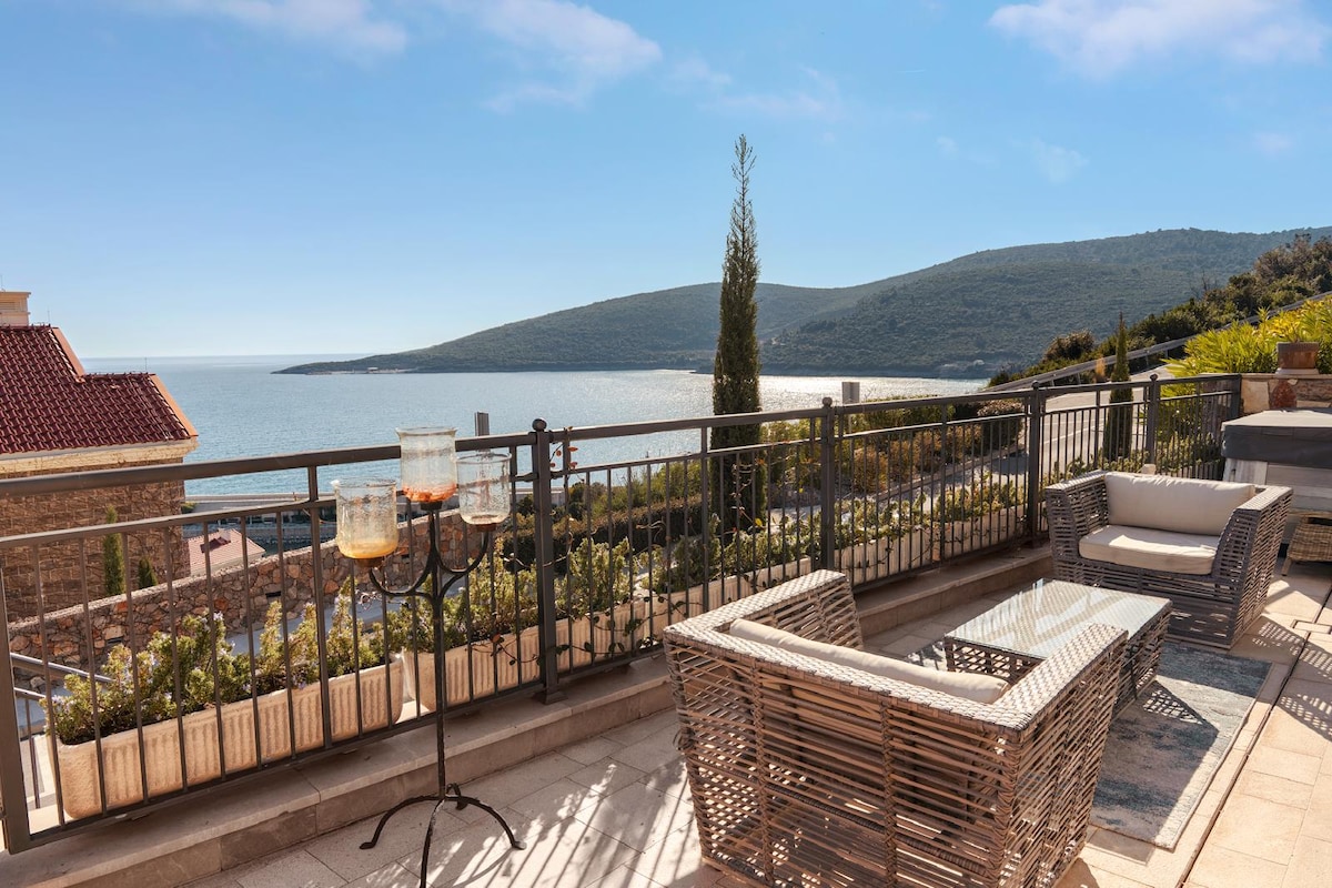 🏡빌라 리비에라 아파트 1 – 몬테네그로 보카 베이의 해변 고급 숙소. 티바트에서 차로 가까운 거리에 있는 레페타니의 해변 휴양지에서 우아함과 편안함을 경험해보세요. 숨막히는 바다 전망과 프리미엄 편의시설을 즐기며 진정한 휴식을 취하세요. 특징: 36m² 규모의 전용 테라스와 자쿠지에서 바라보는✨ 바다 전망 킹사이즈 침대🛏️ 1개 + 2인용 소파 베드 욕실 🚿 1.5개 주방 시설🍽️ 완비 식사 공간 엔터테인먼트용 LED TV📺 2개 🚗 무료 주차 편안한 숙박을 위한🛋️ 옷장 및 암막 커튼
