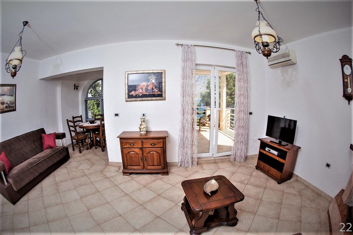 바다 전망이 좋은 아파트. 새 가구와 가전제품이 구비되어 있습니다. 편안한 휴가를 위해 필요한 모든 편의시설이 갖춰져 있습니다. 주차는 무료입니다. 저희와 함께 아침, 점심, 저녁 식사를 좋은 가격에 주문하실 수 있습니다. 전체 보드를 제공합니다. 빌라에 셰프가 있습니다.