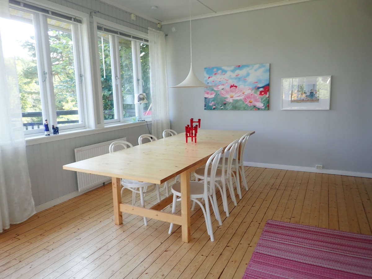 주방과 거실에는 155cm 소파 베드가 있고 바다 전망을 즐길 수 있습니다. 160cm 더블 침대가 있는 넓은 침실. 오븐/인덕션, 냉장고/냉동고, 싱크대, 전자레인지가 있는 주방. 샤워기, 세탁기, 건조기가 있는 욕실. 발코니와 잔디가 있는 넓은 야외 공간. 외부 주차. 해변, 절벽, 선착장이 있는 물가까지 도보로 10분, 집 뒤 숲까지 1분. 차로 15분 거리에 센터, 10분 거리에 노르뷔 쇼핑. 보트로 20분 거리에 코스터. 조용한 지역.