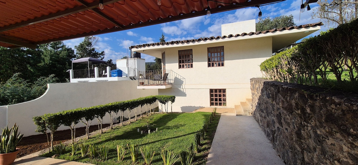 Quinta colonial para disfrutar con la familia con grandes espacios abiertos que ofrecen seguridad y limpieza durante esta pandemia. Confortable casa que conjuga lo rústico con lo moderno y la tranquilidad de la naturaleza. Decorada con artesanía mexicana y poblana. 1,500 metros de jardín, WI-Fi, 4 tv's con cable Localizada a 5 min caminando del centro de Zacatlán.