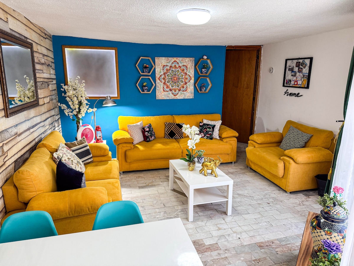 커플, 가족 또는 단체에 이상적입니다. 현대적이고 200평방미터의 거실로 Udlap에서 3분 거리에 있습니다. 1층에 휠체어 사용자에게 적합합니다. 청구서를 발행합니다. 같은 구역에 3개의 아파트가 있습니다. 단체 또는 대가족을 위한 숙소. 생태 교외에서 2분, 촐루라까지 직선으로 7분, 촐루라 피라미드에서 7분 거리에 위치하고 있습니다. 초고속 인터넷. 세탁기와 건조기가 구비되어 있습니다. 수건, 샴푸, 비누, 식수, 커피, 설탕이 구비되어 있습니다.