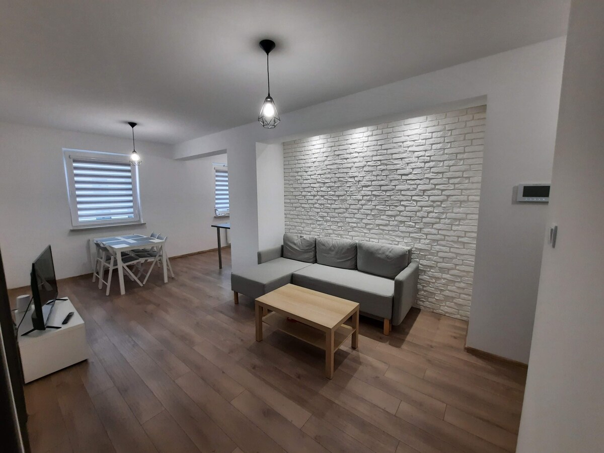 휴식과 평온을 즐기십시오. 도심에서 1.5km 거리에 위치한 조용한 지역에 위치한 세련된 아파트로, 넓은 발코니와 무료 주차장이 있습니다. 셀프 체크인. 엘리베이터가 있는 3층 현대식 블록의 1층에 위치하고 있습니다. 냉장고, 작은 커피 머신, 세탁기, 건조기, 평면 TV, 와이파이, 매우 편안한 침대가 있습니다. 도시와 주변 지역을 둘러보기에 좋은 출발점. 오프로드 애호가를 위한 장소인 PIASKOWNICA에서 1km. 몇 대의 자전거를 보관할 수 있는 공간.