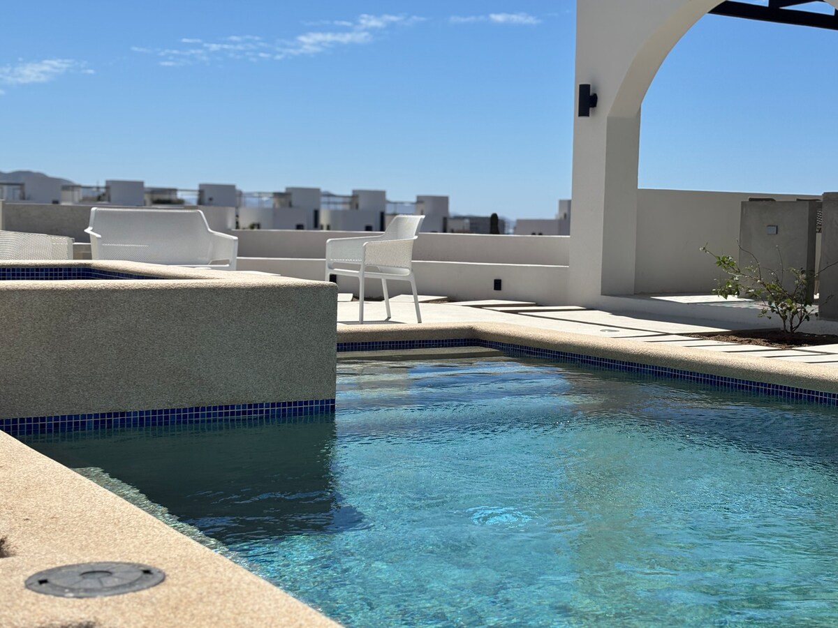 새로운 수영장/자쿠지, 다양한 과일/허브가 있는 과수원(계절에 따라 다름), 최고의 파티오 데크에서 바라보는 멋진 바다/일몰 전망을 즐길 수 있는 아름다운 2.5에이커 게이트 숙소에 위치한 넓고 프라이빗하며 고급스러운 침실 2개/욕실 2개 카시타. 수영장/자쿠지 공간, 옥상 데크, 그릴 및 공용 공간을 모두 이용할 수 있습니다. 아름답고 한적한 백사장까지 도보로 10분, 가장 가까운 레스토랑/바까지 도보로 5분, 페스카데로 중심지까지 차로 5분, 세리토스까지 차로 5분, 토도스 산토스까지 차로 10~15분 거리입니다.