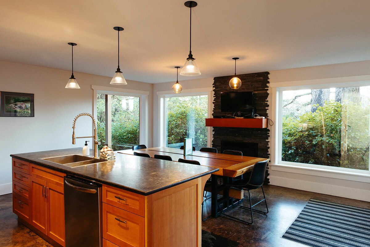 이 전용 휴양지는 유클루레트 인렛에 위치한 1에이커 규모의 부지에 위치해 있으며, 유클루레트 타운 센터 편의 시설과 타운 해변까지 도보로 이동할 수 있는 거리에 있습니다. 바다 전망 데크에서 모닝 커피를 즐기며 물개, 카약 선수, 낚시 보트가 지나가는 것을 보며 하루를 시작해 보세요. 멋진 서부 해안을 둘러보고, 야외 샤워, 사우나 또는 일본식 오푸로 욕조에서 하루를 마무리하세요. 저희는 이곳에서 휴식을 취하는 것을 정말 좋아하며 이 특별한 장소에 대한 사랑을 공유하고 싶습니다.