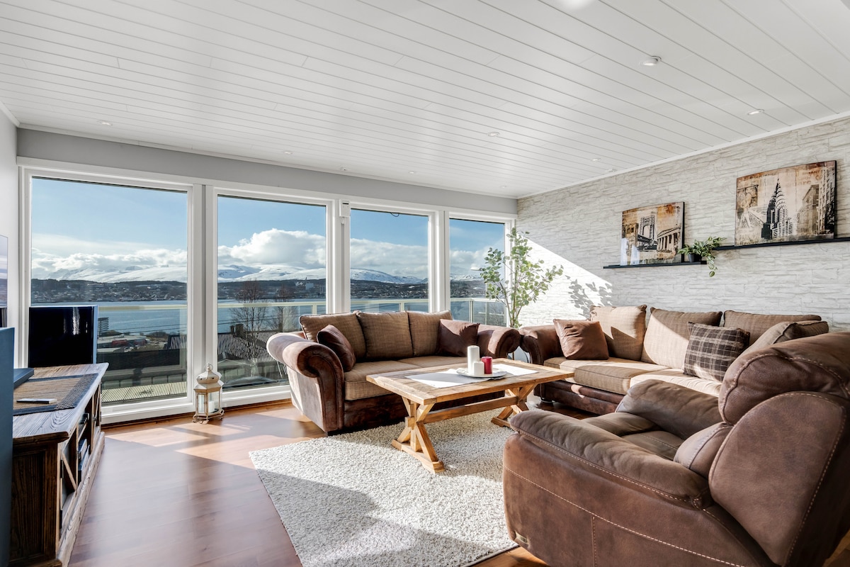ํธ๋กฌ์ ๊ผญ๋๊ธฐ์ ์์นํ ์ค์์ ํ๋์ ์ธ ํ๋ ธ๋ผ๋ง ์ํํธ๋ก ๊ตํต๋์ด ์ ์ ์กฐ์ฉํ ์ฃผ๊ฑฐ ์ง์ญ์ ์ปค๋ค๋ ์ฐฝ๋ฌธ์ด ์์ต๋๋ค. ์ด ์ํํธ์๋ ๋ชจ๋ ์ฃผ๋ฐฉ์ฉํ, ์์ค, ๋ฒฝ๋๋ก, ์นจ๊ตฌ, ์๊ฑด, 150cm ๋๋น์ ํธ์ํ ์นจ๋๊ฐ ์๋ ์นจ์ค, ๋์ ์ท์ฅ์ด ์๋น๋์ด ์์ต๋๋ค. ๋์ฌ๊น์ง ๋๋ณด๋ก 20๋ถ, ์๋ฃํ์ ๊น์ง 10๋ถ, ์ค์ฝ๊ธ๋ฆฌ์คํธ ๋ฒ์ค ์ ๋ฅ์ฅ๊น์ง 5๋ถ ๊ฑฐ๋ฆฌ์ ์์ผ๋ฉฐ ๊ณตํญ, ๋์ฌ, UiT ๋ฐ ์ฐ์ ๋ฆฌํํธ๊น์ง ๋ฒ์ค๊ฐ ์์ฃผ ์ฐ๊ฒฐ๋ฉ๋๋ค. ๊ณตํญ๊น์ง ํ์๋ก 10๋ถ ์์.