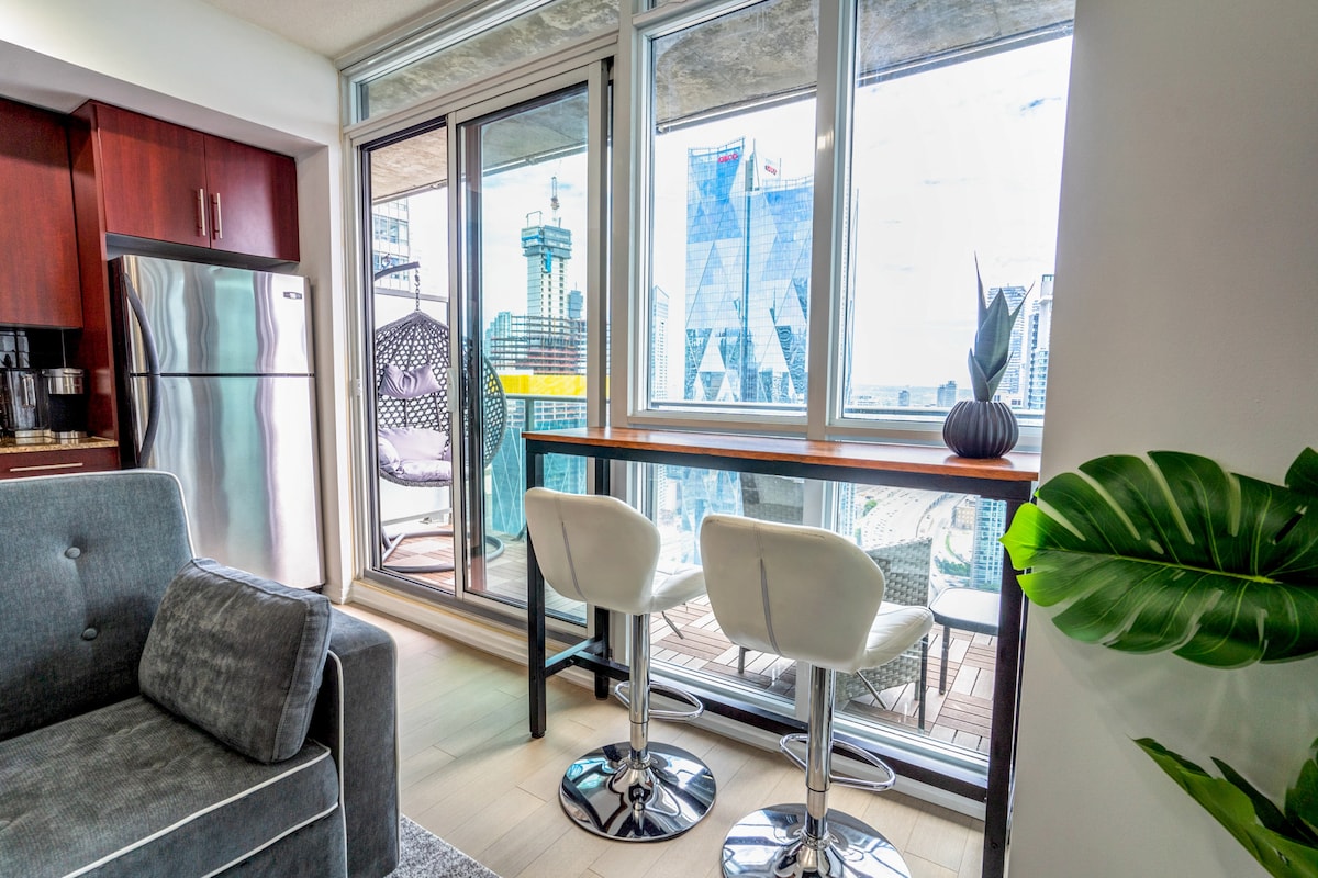 세련된 콘도에서 토론토 시내를 경험하세요! 밝은 주방에서 하루를 시작하고 발코니에서 커피를 즐겨보세요. 도시를 둘러본 후 넷플릭스를 보며 편안한 시간을 보내세요. CN 타워, 로저스 센터, 리플리 아쿠아리움, 전시 장소, 레스토랑, 워터프론트까지 도보로 이동할 수 있습니다. 완비된 주방, 큐리그, 업무용 책상 2개. 건물 내 수영장, 온수 욕조, 사우나, 헬스장, 계절에 따라 옥상 바비큐, 무료 주차장, 셀프 체크인 등의 시설을 갖추고 있습니다. 7박 이상의 숙박 및 환불 불가 예약에 대한 할인. 잊지 못할 토론토 여행을 위한 숙소를 지금 예약하세요!