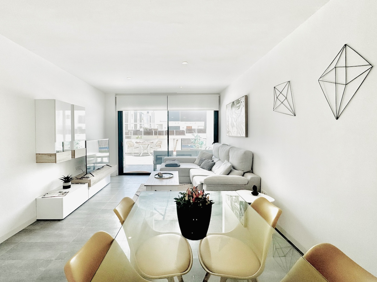 전용 아파트는 최대한의 편안함을 느낄 수 있도록 설계되었습니다. 최첨단 가전제품, 에어컨, 특별히 엄선된 침대가 완비되어 있어 탁월한 삶의 질을 보장합니다. 우아한 디자인과 프리미엄 소재는 쾌적하고 새롭고 깨끗한 환경을 조성합니다. 전략적으로 위치한 이 숙소는 알리칸테, 엘체, 해변, 비즈니스 파크, 공항에서 가까운 거리에 있어 필요한 모든 것에 완벽한 위치를 제공합니다.