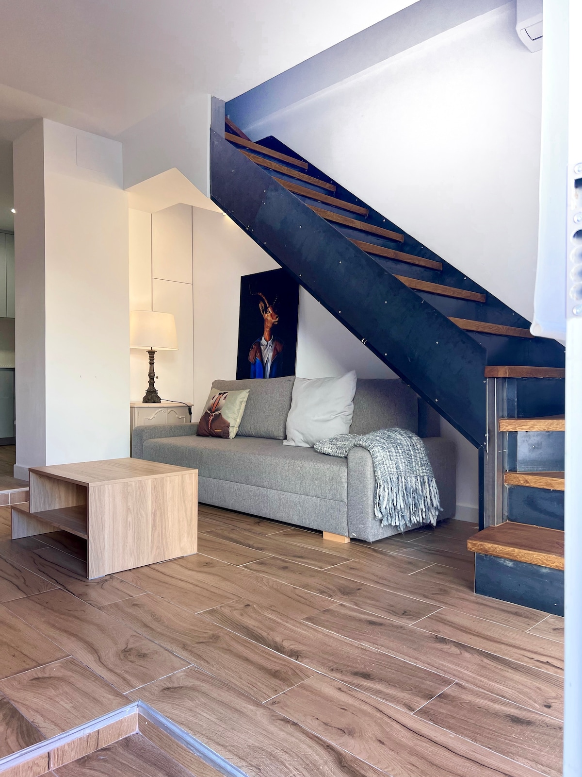 73m2의 밝은 디자인의 완비된 로프트. 1층에는 모든 가전제품이 갖춰진 미니 키친이 있는 넓은 거실과 침실이 있으며 2층에는 더블 침대와 욕실이 있습니다. 카스티야 광장과 공항에서 불과 5 분 거리에 위치하고 있습니다. 자동차 (M30, M40 및 M11) 및 대중 교통 (경전철, 버스)으로 접근성이 좋습니다. 차고 포함.