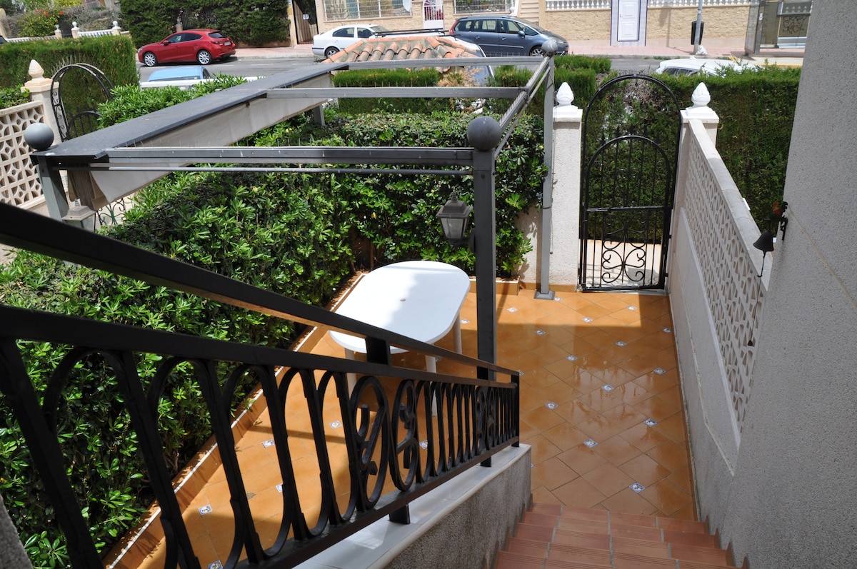 Modern and comfortable newly furnished bungalow with private roof terrace and communal pools near the beach. 800m from the beach. 90 mยฒ On the first floor there are 2 bedrooms, each with a balcony and a bathroom with shower. The bedrooms have two double beds measuring 150x200 cm. Sofa bed (1.50 x 2.00 m) The largest shopping center, Zenia Boulevard, with its 150 shops and numerous restaurants is only about 300 m from your holiday home.