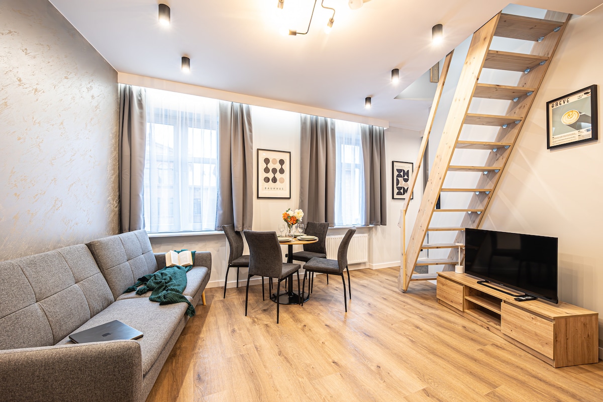 토룬의 중심부에 위치한 파우더 아파트. 스마트 TV