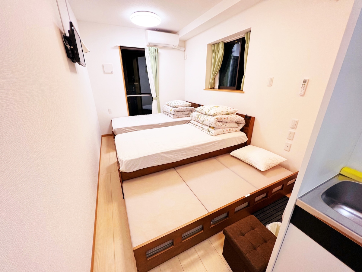 시부야역 도보 6분. 시부야 교차로(도보 5분): 세계에서 가장 붐비는 교차로를 확인하고 도쿄의 맥을 느껴보세요. - 시부야 스카이(시부야 스크램블 스퀘어 최상층)까지 도보 8분: 도쿄의 360도 파노라마 전망(사전 예약 권장) JR 시부야역, 도쿄, 우에노, 아키하바라, 이케부쿠로, 신주쿠, 오쿠보, 하라주쿠, 메구로, 시나가와, 나리타 공항, 하네다 공항까지 바로 이동 🛋️ 객실 시설 및 서비스 침실 2개, 거실 1개, 욕실 1개, 욕실 1개(건식 및 건식) 🛏️ 침대 배치 💞마스터 침실: 더블 침대 1개 (가로 150cm × 세로 200cm) 2명을 편안하게 수용할 수 있습니다. 💞두 번째 침실: (가로 150cm × 세로 200cm) 2명을 편안하게 수용할 수 있습니다. 💞거실: 접이식 소파 베드 (너비 120cm × 길이 200cm) 5번째 게스트용. 📌 팁: 다다미를 사용할 때는 수납장에 접어 넣고 티 테이블을 위한 공간을 확보하세요. 🧺 생활 편의 - 인프라: 무료 와이파이, 냉난방 에어컨, 전자레인지, 냉장고, 세탁기, 헤어드라이어, 다리미, TV, 전기 주전자. - 무료 용품: 수건, 칫솔, 샴푸, 린스, 바디 클렌저, 페이셜 티슈, 화장지. - 주방용품: 기본 조리도구, 프라이팬, 냄비, 접시. 🏪 주변 시설 비즈니스 지구에 위치한 숙소, 식사와 쇼핑, 10개의 트램 노선 이용 가능, 매우 편리한 교통 시설.