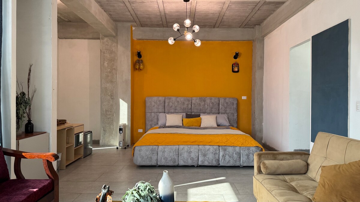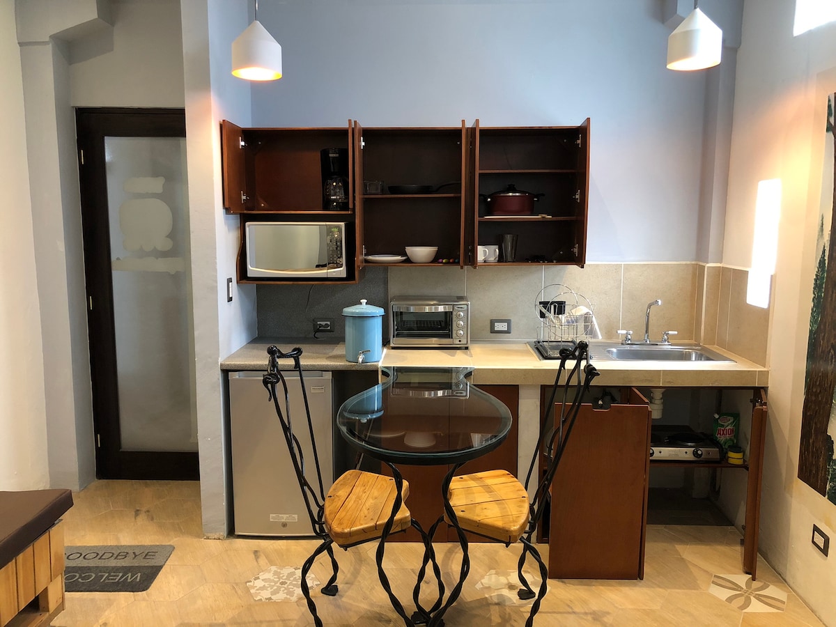 Ideal para viajeros solos, parejas o trabajadores remotos, este espacio está totalmente equipado con: • Cama doble • Cocineta con utensilios básicos • Baño privado con agua caliente • Escritorio para estudiar • Wi-Fi de alta velocidad • Smart TV con acceso a tus plataformas favoritas Ubicado en una zona segura y céntrica, estarás a minutos del Parque Central, restaurantes, cafés y supermercados. ¡Además, contamos con un equipo de limpieza que cuida cada detalle antes de tu llegada!
