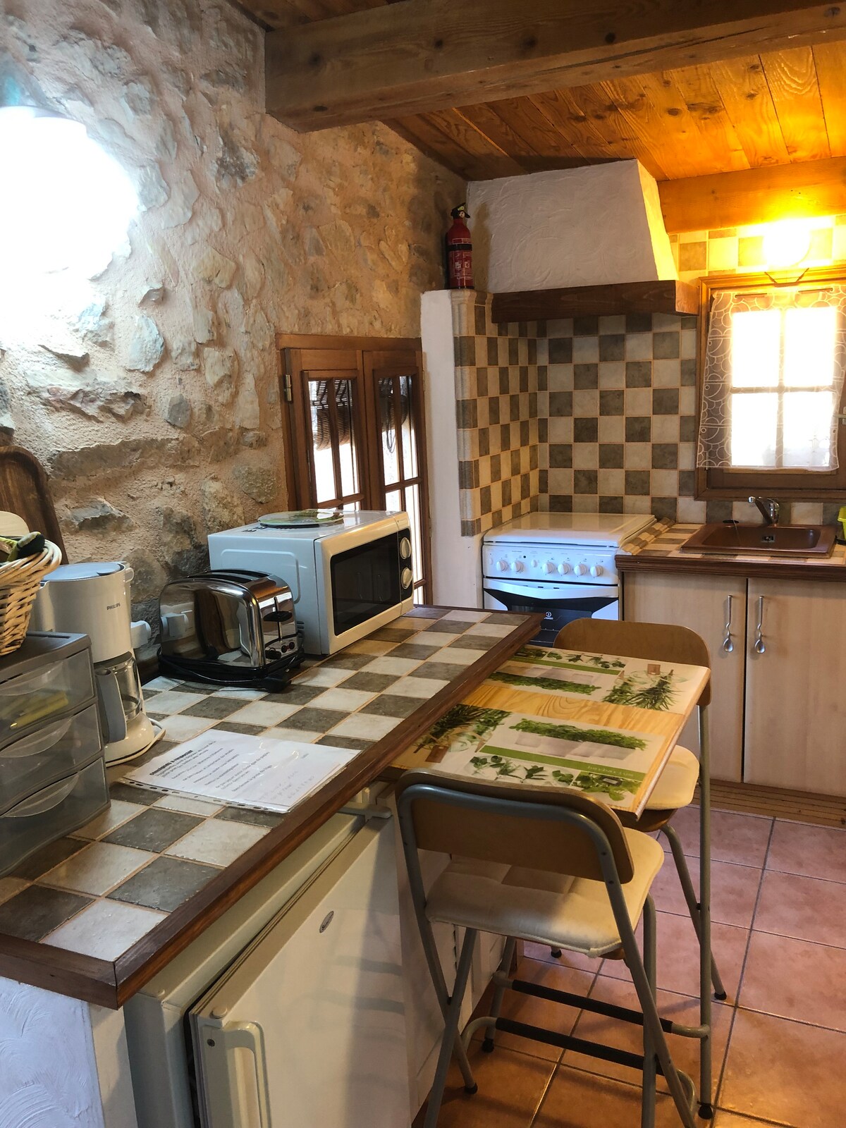 다이닝 코너에 개방형 주방이 있습니다: 전자레인지, 세탁기, 냉동고, 냉장고, 네스프레소 커피 머신, 주전자, 토스터, 쿡탑. 파티오: 테이블 1개, 정원 의자 4개, 바비큐 시설. 전용 정원에 2개의 일광욕 공간. 거실 : 2인용 소파, 2개의 의자, 바 탁자, TV. 침대/소파 140cm 소파 1개 침실 : 140cm 침대 1개, 테이블과 의자 2개가 있는 테라스 + 전용 정원. 요청 시 반려동물 동반 가능. 유아용 침대, 유아용 식탁 의자.