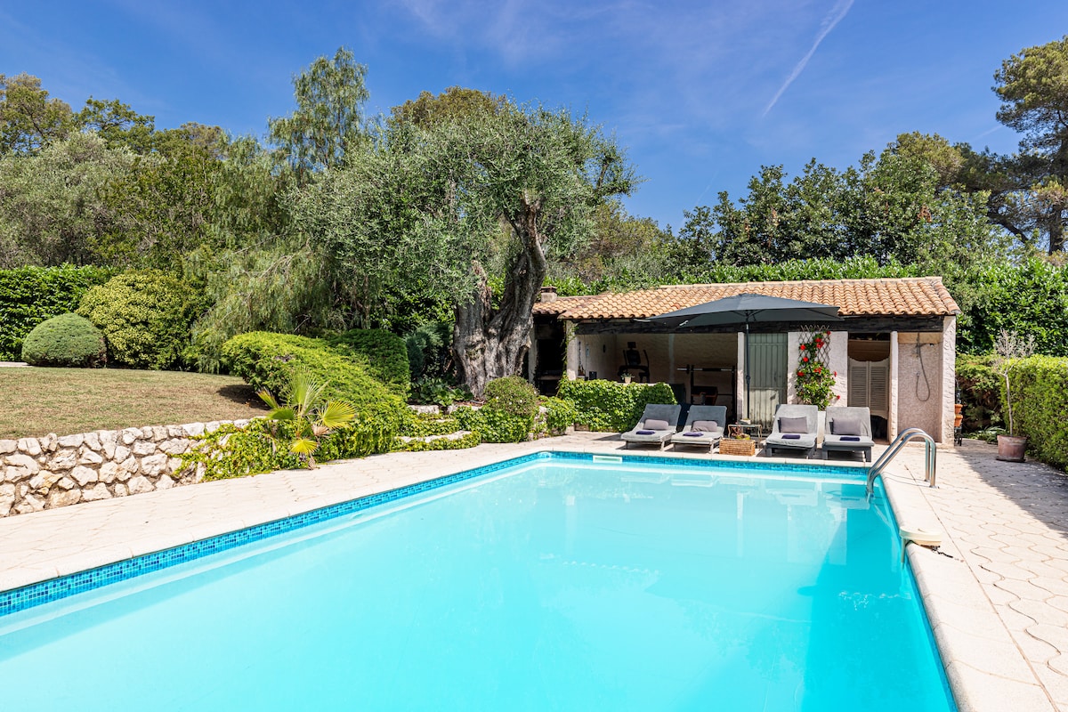 슈퍼 칸의 주거 지역, 안전한 빌라, 120m2의 아름다운 넓은 숙소, 독립적, 단층, 밝고 편안한 침실 3개, 대형 테라스 3개, 캡 단티브에서 니스 만까지의 아름다운 바다 전망. 2200 ㎡ 의 조경지, 조용하고 간과하지 않음, 칸 또는 골페의 해변에서 10분 거리 - 주안. 전용 온수 인피니티 풀, 온수 욕조, 불로드롬, 탁구, 바베큐 등 지붕이 있는 주차 2대. 초고속 광케이블 와이파이. 별점 5점 가구 완비.