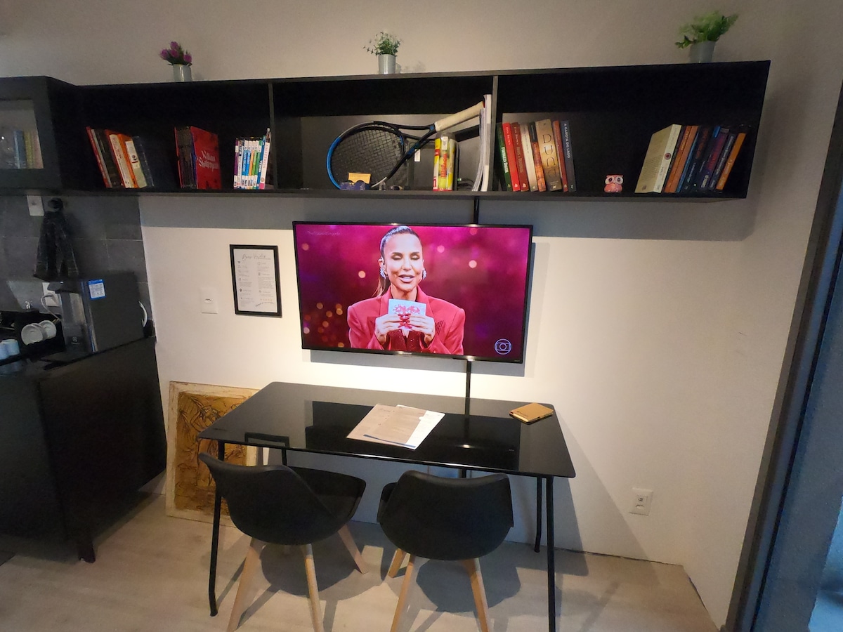 Vaga de Garagem Livre (raramente terá outro morador - válido a partir de 10/11/25) Desfrute deste Apartamento Studio Novinho, Moderno e Charmoso! Ar Condicionado, Smart TV 43”, Internet 500mb, Máquina de Café Nespresso, Geladeira Duplex Electrolux, Cooktop, Depurador de Ar, Filtro de Água Electrolux, Forno Micro-ondas Electrolux, Cama de Casal, Chuveiro Acqua Lorenzetti, Armários em todos os Ambientes, Enxoval Completo (cama 100% algodão, mesa Porcelana Schmidt e banho Buddemeyer)!