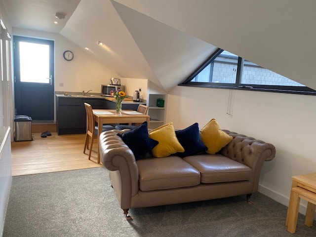 웨스트 콘월을 둘러보기에 좋은 위치에 있는 현대적인 위층 아파트입니다. 개방형 주방/거실 공간, 별도의 침실, 샤워실, 야외 발코니가 있습니다. 냉장고, 토스터/주전자, TV 및 와이파이가 제공됩니다. 쿠커 대신 콤비네이션 전자레인지 오븐이 제공됩니다. 이 아파트에는 게이트가 있는 전용 주차장이 마련되어 있습니다. 해변과 해안 산책로는 도보로 10분 거리에 있습니다. 세인트 마이클스 마운트까지 산책/자전거를 타거나, 세인트 아이브스까지 경치 좋은 기차를 타거나, 실리 제도로 여행을 떠나보세요.
