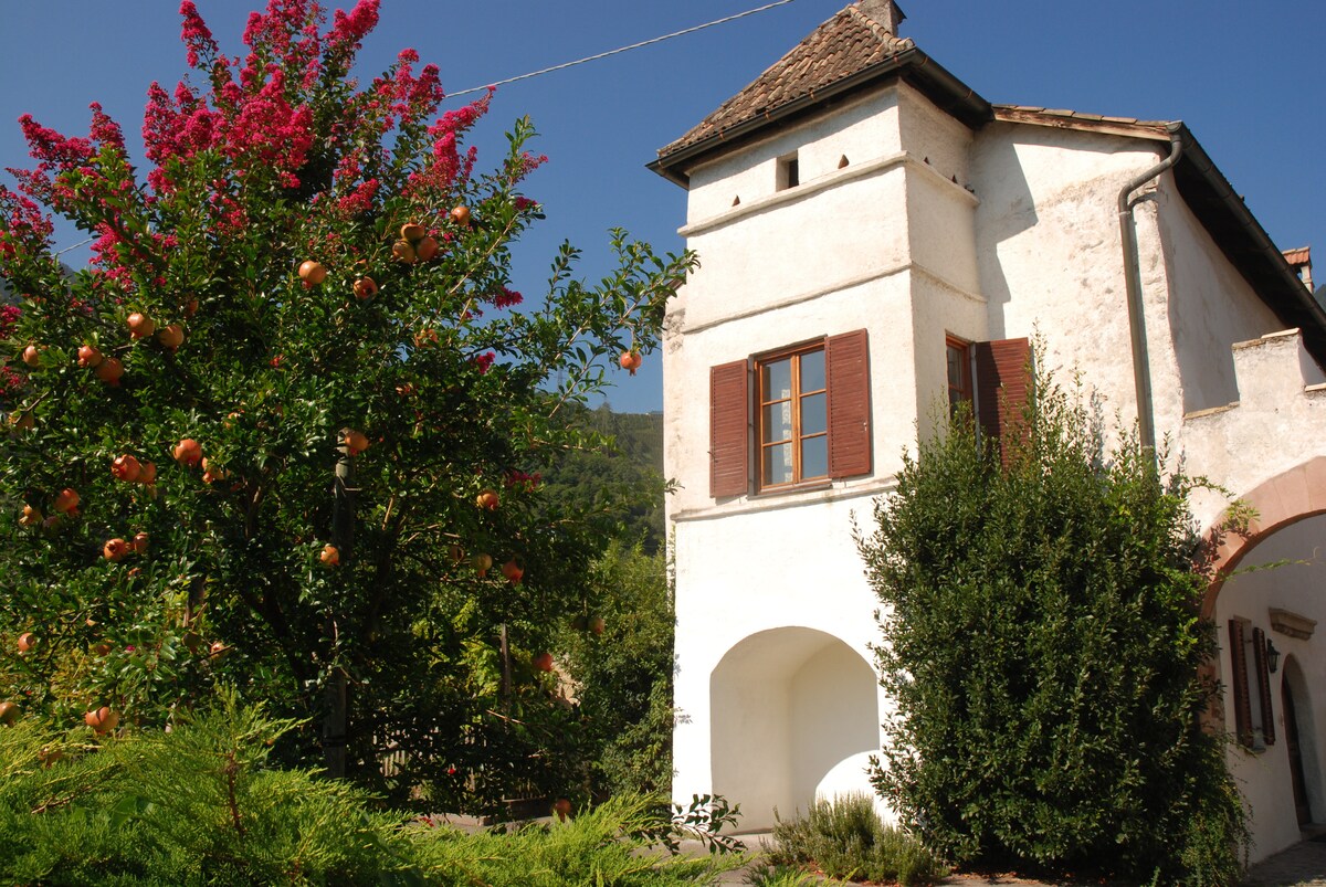 Exklusive Ferienwohnung im Erdgeschoss / Südseite von Schloss Planta, mit Gartenbenutzung, Größe 85m2, ideal zum Wandern, Skifahren oder Ausspannen: am Rande von Obermais in Fußentfernung von Meran eingebettet in Apfelbäume und Hortensien direkt am Maiser Waal, liegt das im 12ten Jahrhundert erbaute Schloss Planta.