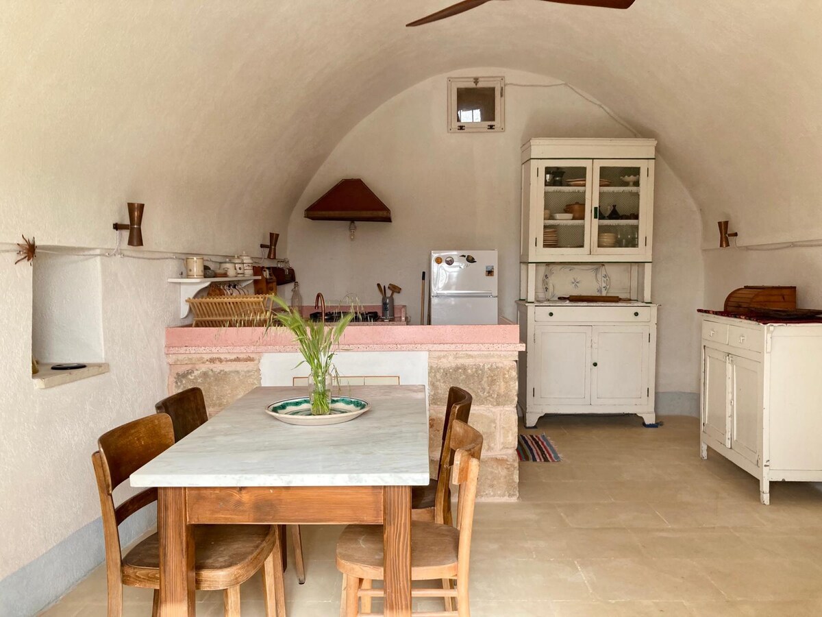 이 집에 머무는 것은 살렌토 문화에 빠져들는 것과 같습니다: 현지 석회암 '투포'와 통 모양의 천장은 역사와 전통이 풍부한 가구와 오래된 물건들로 장식된 벽에 걸맞습니다. 올리브 나무, 석류, 감귤의 녹색과 돌의 황토색이 어우러져 도시의 북적거리는 붐비는 느낌과 뜨거운 더위에서 벗어나 휴식을 취하기에 이상적인 곳입니다.