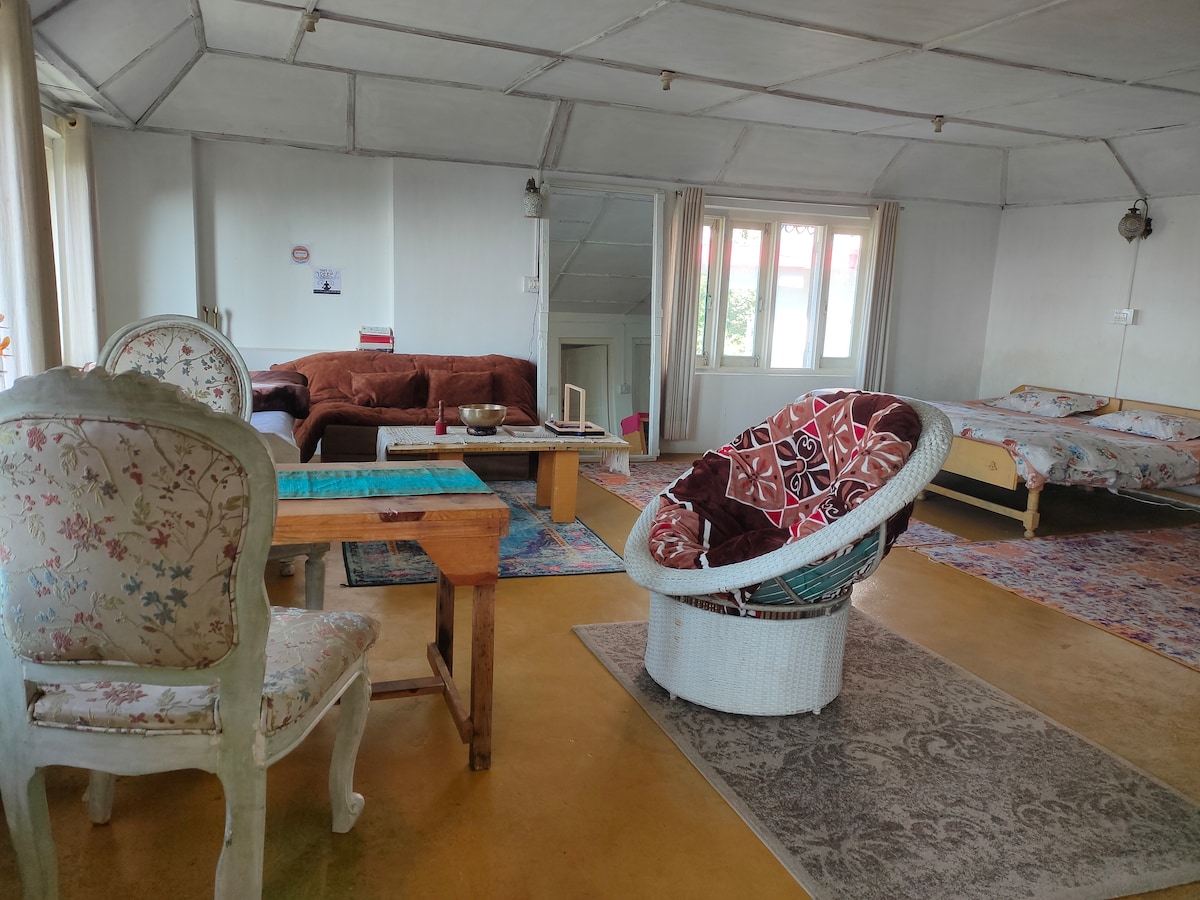 내 집처럼 편안한 고급 스위트에 초대합니다. 휴식을 취하고, 자신을 있는 그대로 표현하며, 조용하고 평화로운 언덕 위 스테이션의 아름다움을 즐기세요. 업무를 가져와야 하더라도 일상적인 일과는 문 밖에 두고 오세요. 맥레오드간즈 메인 차우크, 달라이 라마 만디르, 로프 웨이, 다람코트, 바그수나그에서 몇 분 거리에 있습니다. 차고에 안전하게 노상 주차가 가능합니다. 모든 영화를 볼 수 있는 타타 스카이, 완비된 주방. 완전한 프라이버시, 산 전망. 공동 호스트인 하리 앤 레슈마 싱은 힌디어, 티베트어, 영어를 구사합니다.