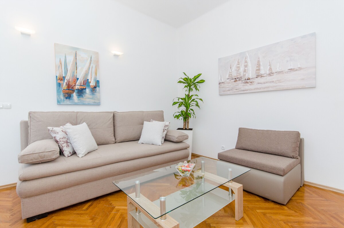Upscale, modern, and recently refurbished one bedroom apartment in the heart of Split. The apartment is only a 5 minute walk (400 meters) from Split’s historic Old Town and Diocletian Palace, bars and restaurants, but yet in a quiet and serene residential neighborhood strategically nestled away from the city’s bustling traffic. This apartment is ideal for couples, travels with a friend, and solo travelers looking to work remotely or solo explore the city of Split.