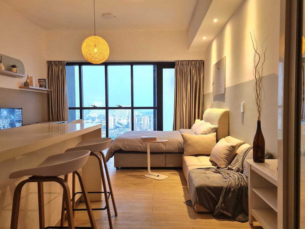 📍Pertama Residency Welcome to my New Bnb - Moonrise City! This studio is newly set up with lots of love, combines contemporary decor with modern amenities and an experience all can enjoy especially Jacuzzi moment with your love & 120” projector screen w/Netflix. This unique place has a style all its own, it offers a cozy, clean, quiet & refreshing stay environment for couples. Come and experience in the new bnb! See you.