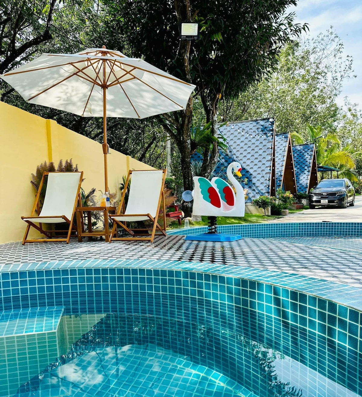가구가 완비된 미미 리조트, 주방, 침실, 넓은 거실 (침실 가능), 큰 수영장, 쾌적하고 평화로운 공간! 아름다운 전망! 바베큐를 진행하기에 이상적인 장소입니다. 4 ~ 10인 가족 단위 여행객에게 이상적인 장소입니다.