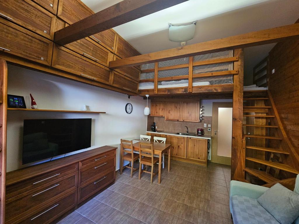 공기감과 넓은 공간을 자랑하는 이 아파트는 최대 4명까지 수용할 수 있는 전용 웰니스를 갖춘 현대적인 숙박 시설에 대한 모든 욕구를 만족시켜 드립니다. 킹 사이즈 더블 침대(180x200)와 최대 2인용 거실의 접이식 소파, 간이 주방, 자쿠지 욕조가 있는 테라스가 있는 아파트. 자쿠지에서 바로 주변 산의 탁 트인 전망을 즐길 수 있습니다. 더 바랄 게 있을까요? 테이블에 발을 올려놓고 이 조용하고 세련된 숙소에서 휴식을 취하세요. 건물에는 핀란드 사우나도 있습니다.