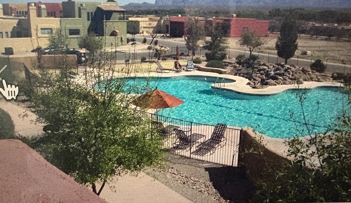 A true Oasis with Private pool, hot spa, grill, outdoor fire pits and indoor wood fireplace. 10 mins drive to shopping center, golf courses, movie theater, restaurants and casino. View of Madera Canyon. 20 mins from airport and Tucson. 30 mins from Tubac. Great for relaxing or entertaining small groups. Perfect for couples, solo adventurers, business travelers and families. Bright and open floor plan with solid brick masonry construction. Walking distance from Anamax Park.