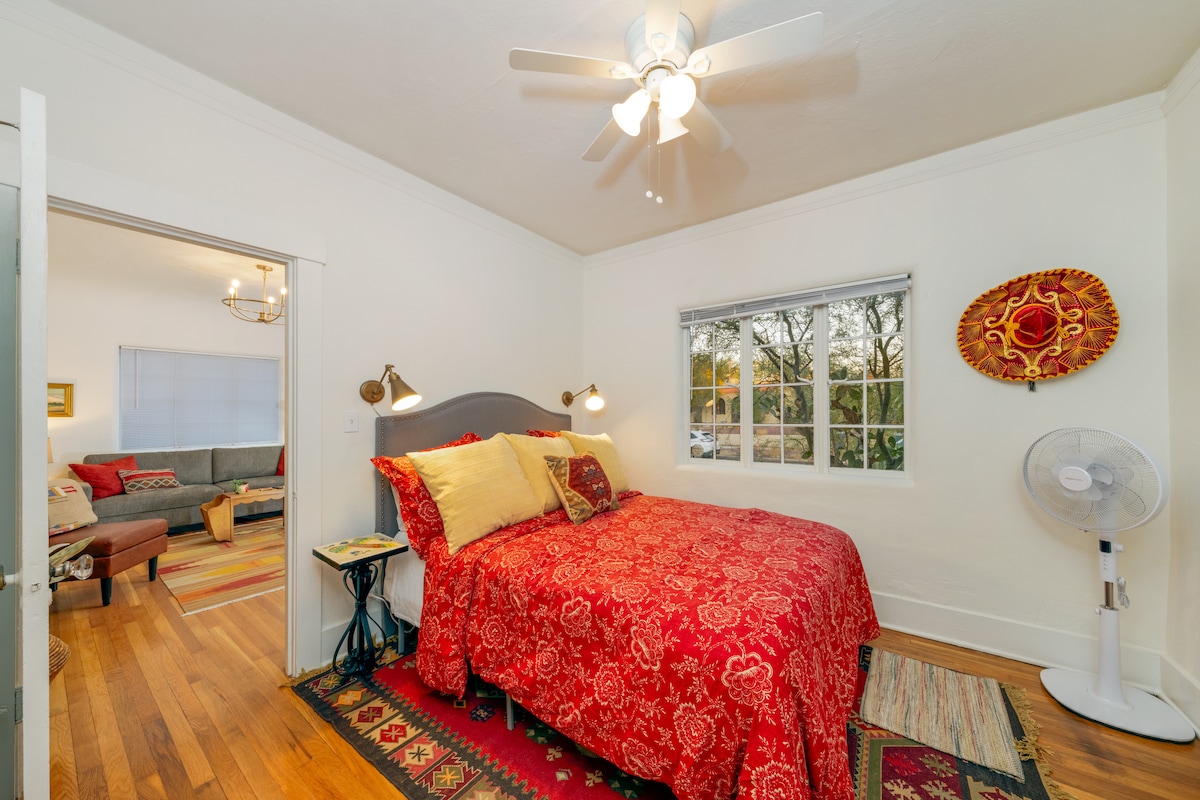 제 소박한 집에 오신 것을 환영합니다! 카사 마쿠 라쿠는 독특하고 기발한 700평방피트의 1945년 방갈로로 좋은 주주가 많습니다! 이 특별한 숙소는 최고의 접근성을 자랑하므로 여행에 더없이 적합합니다. 현지 예술가의 집에 머물러 보세요! 보석 쇼, 시내, 애리조나 대학교, 배너 헬스 등 병원에 이상적인 위치입니다. 사와로 국립공원까지 약 20분 거리입니다! 근처에 하이킹, 자전거 타기, 훌륭한 레스토랑도 있습니다! 블랙리지 자전거 대로는 시내로 이동할 수 있는 추가 보너스입니다!