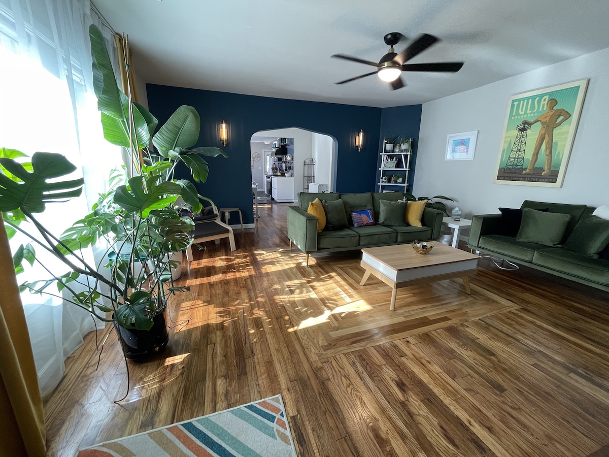 Welcome to your peaceful Tulsa retreat - a beautifully decorated home, located near Downtown, BOK, Riverside, and The Gathering Place. Our bed is exceptionally comfortable, layout is spacious, and the upstairs loft adds a touch of charm. Enjoy the tree top deck and hot tub area! And walk to Tulsa's best coffee shops, just a few blocks away! Whether you're visiting for an event, exploring the City, or simply looking for a peaceful escape, you'll feel right at home from the moment you arrive.
