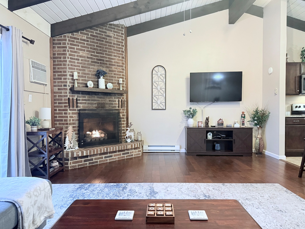 이 사랑스럽고 아늑한 포코노 전원주택에서 모든 것에서 벗어나세요. 숙소에는 퀸사이즈 침대가 있는 넓은 침실 3개, 욕실 1개, 거실, 바 스툴 조리대가 있는 완비된 주방이 있습니다. 새로 추가된 듀얼 에어컨과 난방 시스템을 즐겨보세요. 외부 편의 시설의 경우, 저희 전원주택은 빅 볼더와 잭 프로스트까지 차로 15분 이내, 카멜백 스키 리조트까지 25분 이내 거리에 있습니다. 이 조용한 커뮤니티에는 산책로, 낚시 호수, 호숫가 해변, 24시간 보안 시설이 있습니다.