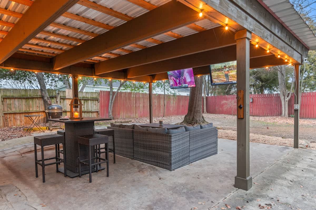 Just minutes from the University of Alabama, this renovated 2BR home offers a comfortable place to slow down and enjoy Tuscaloosa. The bright, open living area flows into a fully equipped kitchen, while the fenced backyard with deck and BBQ makes outdoor time easy. With queen beds, a sleeper sofa, smart TVs, fast Wi-Fi, and a quiet neighborhood setting, it’s a great fit for game days, campus visits, or an easygoing getaway close to everything.