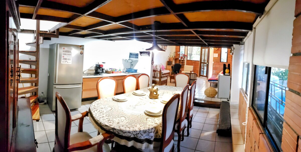 3층에 위치한 킹사이즈 침대가 있는 작은 방. 온수, 와이파이, 스마트 TV, 천장형 선풍기, 에어컨이 완비된 욕실이 있습니다. 숙소에는 작은 간이 주방과 식당이 있는 테라스를 공동으로 사용합니다. 도시의 중앙 공원은 도보로 10분 거리에 있으며, 5분 거리에 박물관, 문화 지역, 정원이 있습니다. 5 데 마요 시장에서 2블록 떨어져 있습니다.
