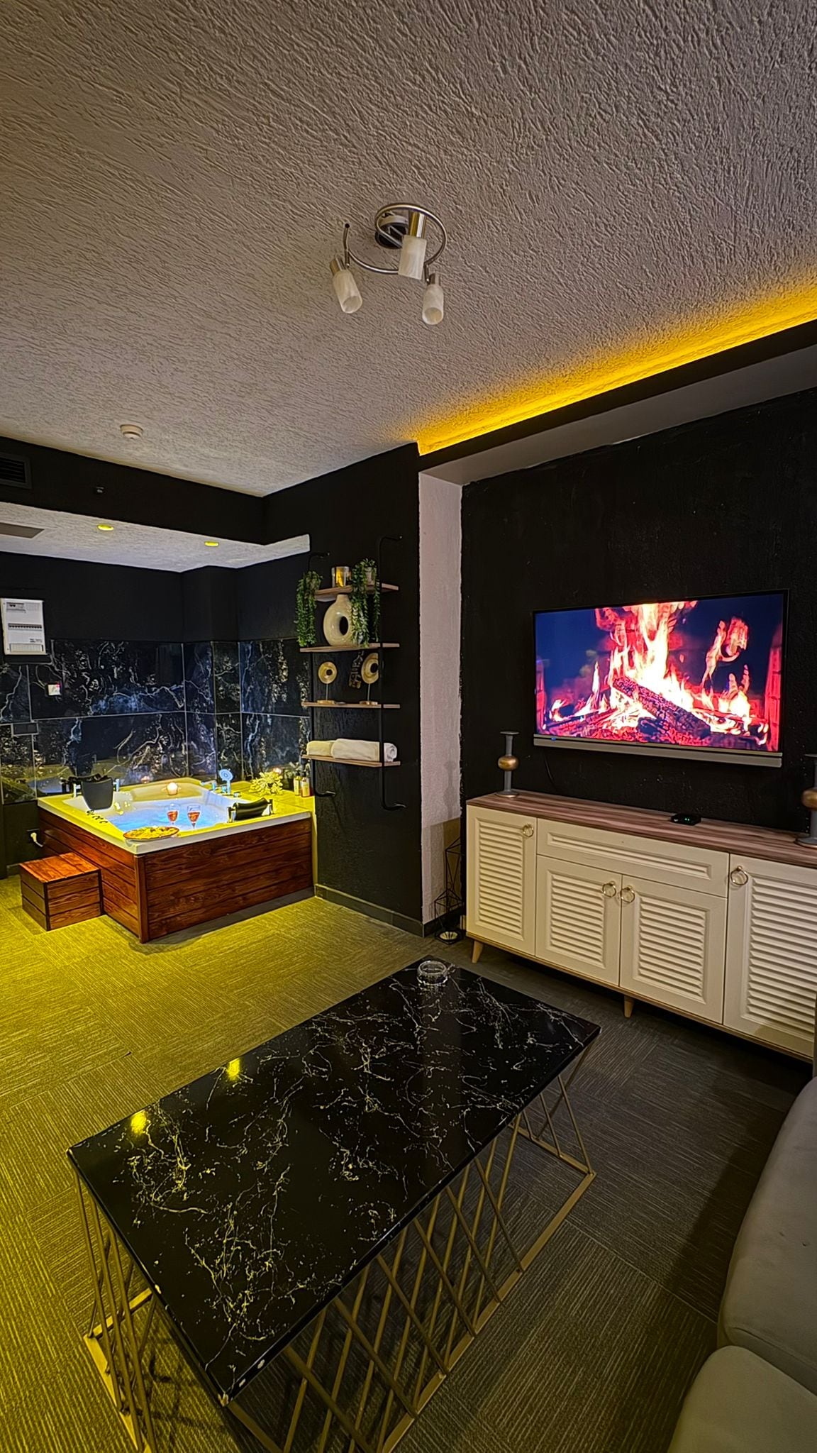 차분하고 세련된 공간에서 느긋하게 휴식을 취해보세요. 멋진 컨셉의 온수 욕조를 즐겨보세요.