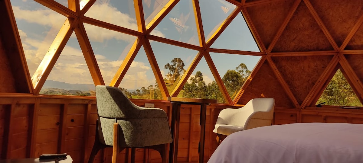 유리와 나무가 어우러진 구조물을 통해 자연과 교감할 수 있는 기회를 갖게 됩니다. 전용 숲 한가운데에 있는 글램핑이 하나뿐입니다. 하루를 뒤로하고 재충전하고 휴식을 취할 수 있습니다. 보고타에서 60km 거리에 있으며, 자전거를 타고 하이킹을 즐기고, 유기농 음식을 먹고, 현지에서 쇼핑을 하고, 농장 동물과 자연을 즐길 수 있습니다. 커플에게 안성맞춤인 숙소입니다. 주방이 없습니다.