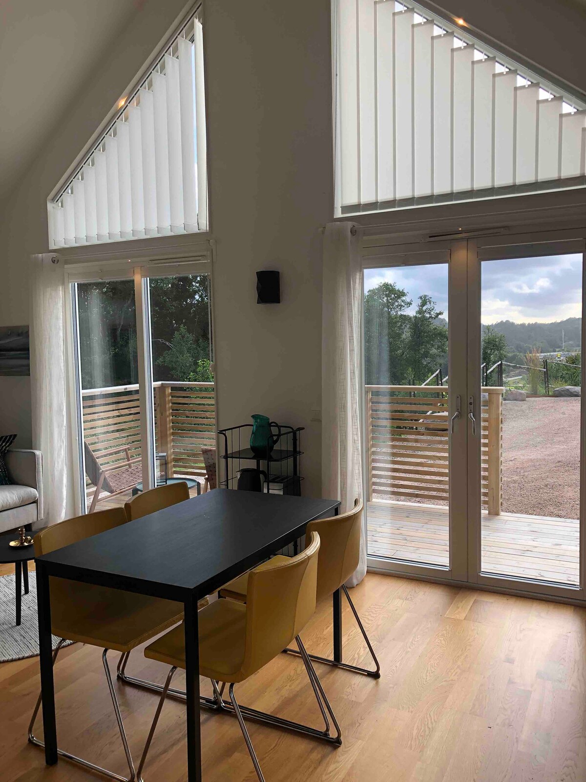 호수(염수)와 숲에 가까운 아늑한 게스트하우스(2025년부터)에서 준비된 침대에 오세요. 수영, 낚시, 버섯 따기 또는 조용한 환경에서 휴식을 취하고 싶은 분들에게 안성맞춤입니다. 들판과 야생 동물이 내려다보이는 매우 평온한 테라스. 침구와 타월이 제공됩니다. 침대는 160x200과 120x200입니다. E6 출구에서 단 5분 소금물이 있는 가장 가까운 수영장까지 800미터. 토레비 골프 클럽과 Örekilsälven의 연어 낚시까지 짧은 거리. 총 면적 약 45㎡