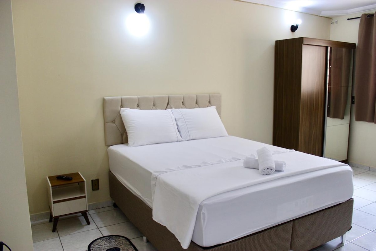 Casa aconchegante, ideal para quem busca conforto e praticidade. O espaรงo รฉ arejado, bem iluminado, cรขmeras de seguranรงa na parte externa, alรฉm disso, o local รฉ totalmente equipado com geladeira, fogรฃo, micro-ondas, churrasqueira e utensรญlios. Perfeita para casais, famรญlias ou quem precisa de um local tranquilo para descansar ou trabalhar. Localizaรงรฃo estratรฉgica, prรณxima a comรฉrcios, como padarias, shopping e com fรกcil acesso. ATENรรO A CASA NรO CONTA COM GARAGEM PRIVATIVA! Sinta-se em casa!