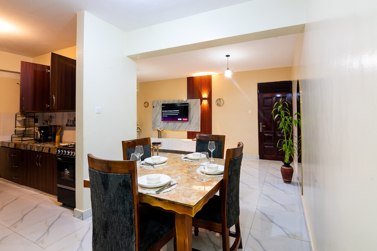 이 눈부신 2베드룸 파라다이스는 전용 발코니와 옥상 테라스에서 놀라운 스카이라인 전망을 제공합니다. 거실에서 반짝이는 수영장 전망을 즐기세요! 아카시아 몰의 번화한 식당까지 도보로 5분 거리에 있는 이 세련된 휴양지에는 푹신한 침대(최고급 스프링 매트리스), 세련된 주방, 아늑한 거실이 있습니다. 반짝이는 수영장, 헬스장, 초고속 와이파이가 있는 럭셔리한 공간에 빠져보세요. 연중무휴 보안, 넉넉한 주차 공간, 150,000 UGX 공항 픽업 서비스가 제공됩니다. 탈출을 예약하세요.