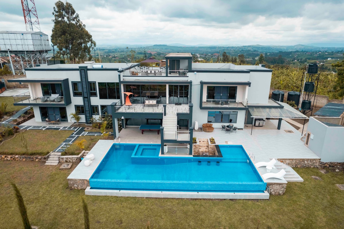 무료 ‘가벼운‘ 아침 식사, 12x6m 전용 인피니티 풀, 비스트로 바, 사우나, 스팀 룸, 에어컨, 고속 와이파이, 70 평면 스크린 디지털 TV, 넷플릭스, 아름다운 파노라마 유리 발코니, 24시간 보안, 컨시어지, 무료 공항 셔틀, 이상적인 특별한 날, 가족 여행, 신혼여행, 주거용 또는 사파리 여행 전후 및 사파리 여행, Entebbe, Kampala 및 Munyunyo가 완비된 멋진 새로운 럭셔리 스타일의 호수 전망 빌라. 완벽하고 안목 있는 비즈니스 클래스
