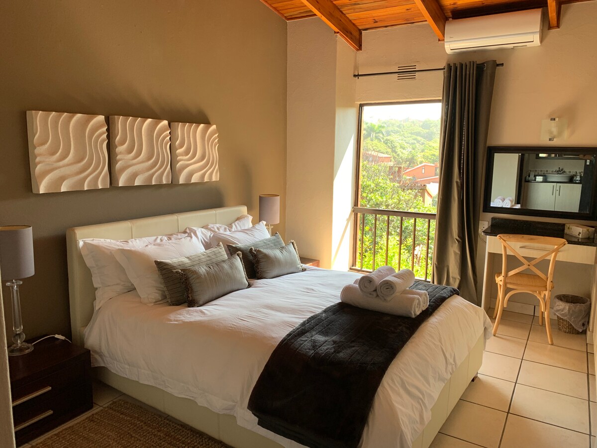 Relax with the whole family at this peaceful place away from the hustle of busy life. Situated in secure complex with 24 hour security. Direct access to one of the most beautiful beaches of South Coast. Take a long walk along the beach which starts at the door stop and stretches to Marina Beach. Enjoy a cup of coffee at the end of the walk. Try out many child friendly amenities such as horse riding, boat rides, surfing, zip lining, whale and dolphin watching, crocodile farm, Mac Banana, MTB.