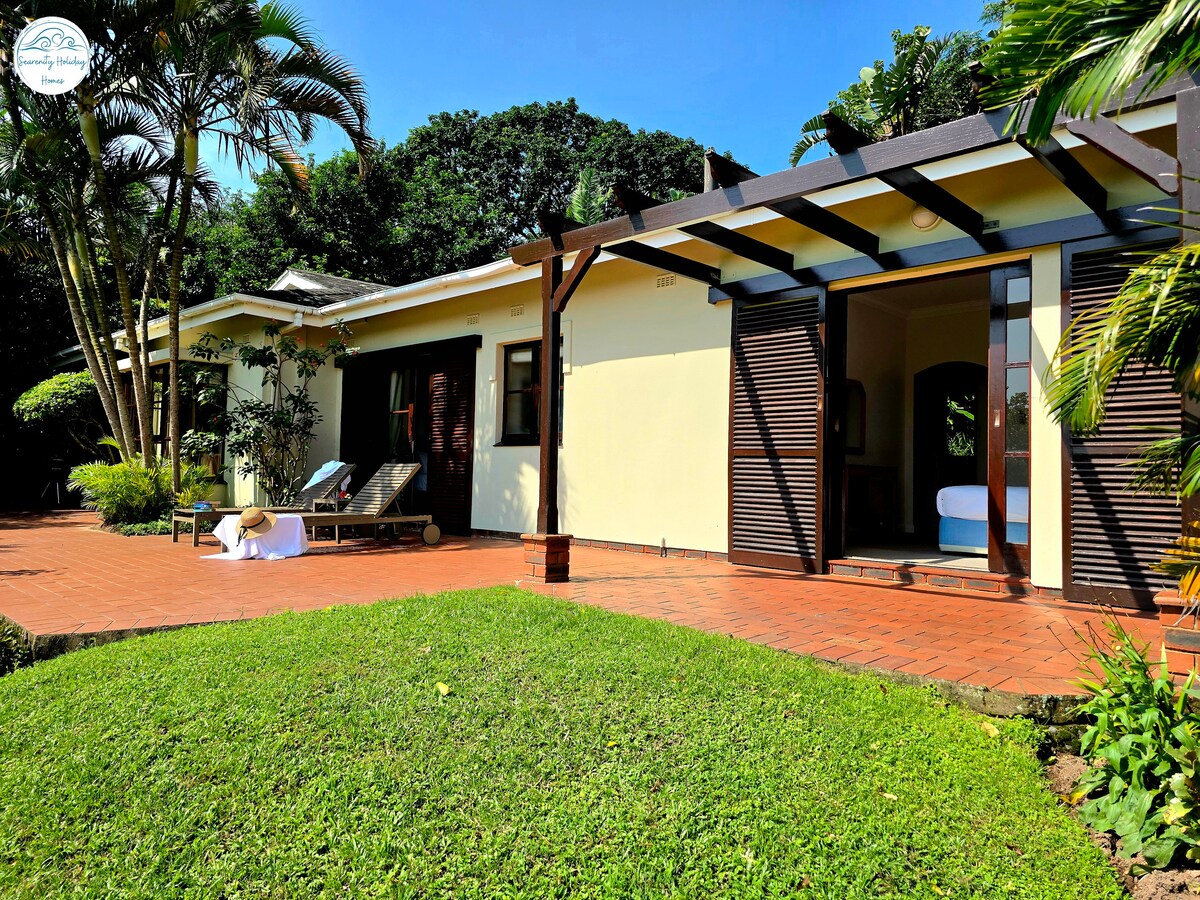 Villa A23 is a modern & newly renovated three-bedroom, 2 bathroom villa situated in Selborne Golf Estate, Pennington, KwaZulu-Natal. Overlooking the manicured gardens of Selborne, A23 has a fully equipped kitchen, open plan dining area, living room & 3 luxurious & tastefully decorated bedrooms. Features full DSTV & WI-FI, patio with built-in braai with outdoor furniture. All Searenity guests have exclusive access to the private beach club, situated close to Pennington main beach.