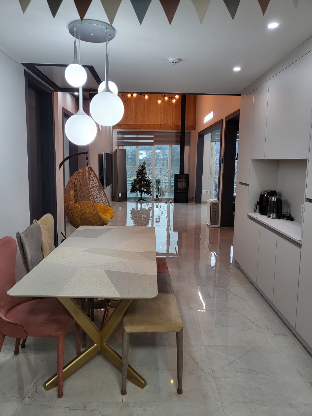 《 경상북도 청도에 위치한 '청도 고요' 🏡 》 도심에서 느낄수 없는 한적함, 고요함을 가지고 있는 전원주택입니다. 호스트 가족들이 미니멀라이프로 휴식하는 리얼 집이기 때문에 감성적인 숙소는 아니지만, 조용한 마을에서 초록 산세와 바람, 새소리, 자연을 느끼며 힐링의 시간을 보낼수 있습니다. 또한, 잔디정원의 화덕에서 특별한 대리석 바베큐를 드신 후 불멍까지 즐기시면서 오감이 행복한 시간을 보낼수 있습니다.