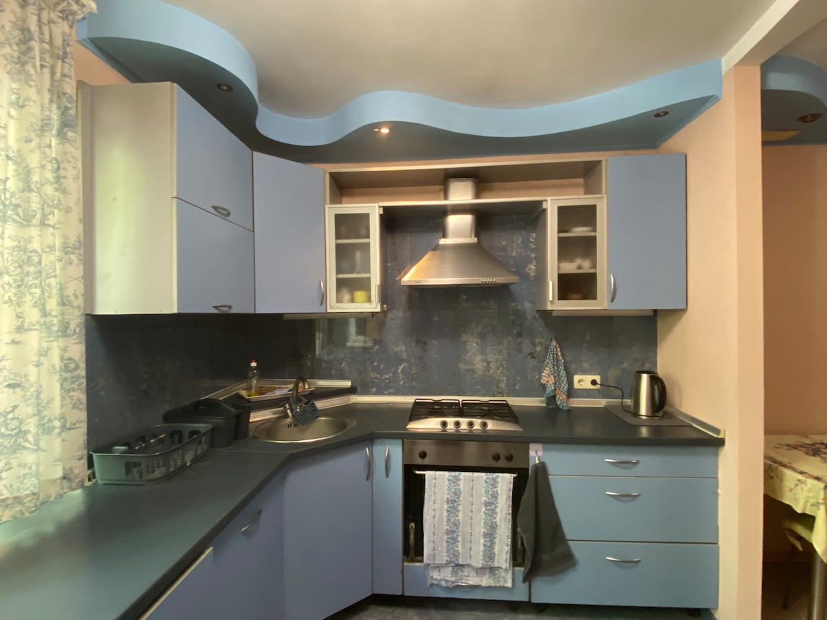 It's a lovely designed and one of the best apartments in Cherkassy. Very warm and cozy in winter, because of Underfloor heating system. A powerful air conditioner will save you from the summer heat. Hot water is always available in bathroom. It have a big Bath-box with hydromassage and steam generator, Infrared sauna, designed for 1 person (sauna for extra charge). Both: toilet bowl and urinal are available in the bathroom. kitchen: Big size refrigerator, ice dispenser, microwave, kettle.
