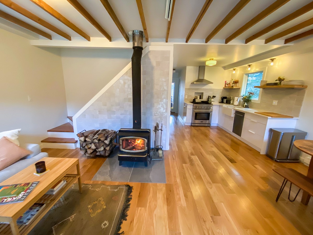 최근 보그(Vogue)에 “도시에서 멀리 떨어진 뉴욕 업스테이트 최고의 에어비앤비” 중 하나로 소개되었습니다. 아름다운 캐츠킬 땅 2에이커에 위치한 아늑한 업스테이트 휴양지입니다. 우드스톡까지 단 8분, 소거티스 마을까지 5분 거리에 있으며, 몇 분 이내에 하이킹, 스키, 수영을 즐길 수 있습니다. 욕실과 침실 2개를 포함한 2층 전체가 새롭게 리모델링되었습니다. 1층은 주방, 거실, 식사 공간이 있는 개방형 구조로 뒷마당 데크로 이어집니다.