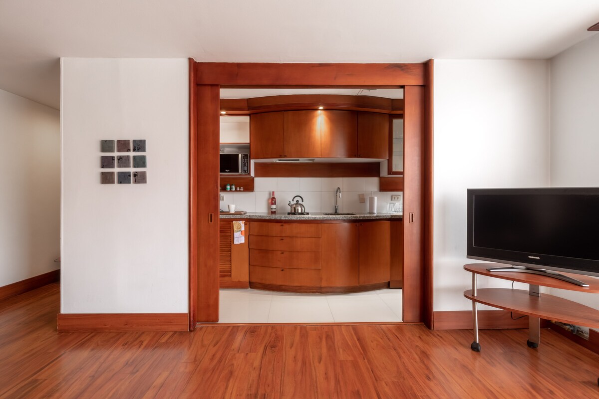 Wake up to a panoramic view of Bogotรกโs iconic Zona G. Start your day with a delicious cup of Colombian coffee, our treat! - Enjoy a workout in the buildingโs gym, then explore the cityโs most celebrated cafรฉs and restaurants, all within walking distance. In the afternoon, relax in the sauna or enjoy the sunset from the heated rooftop pool. As evening falls, head just minutes away to Zona T to enjoy the cityโs best nightlife. Located in Bogotรกโs safest residential building, with 24/7 security.