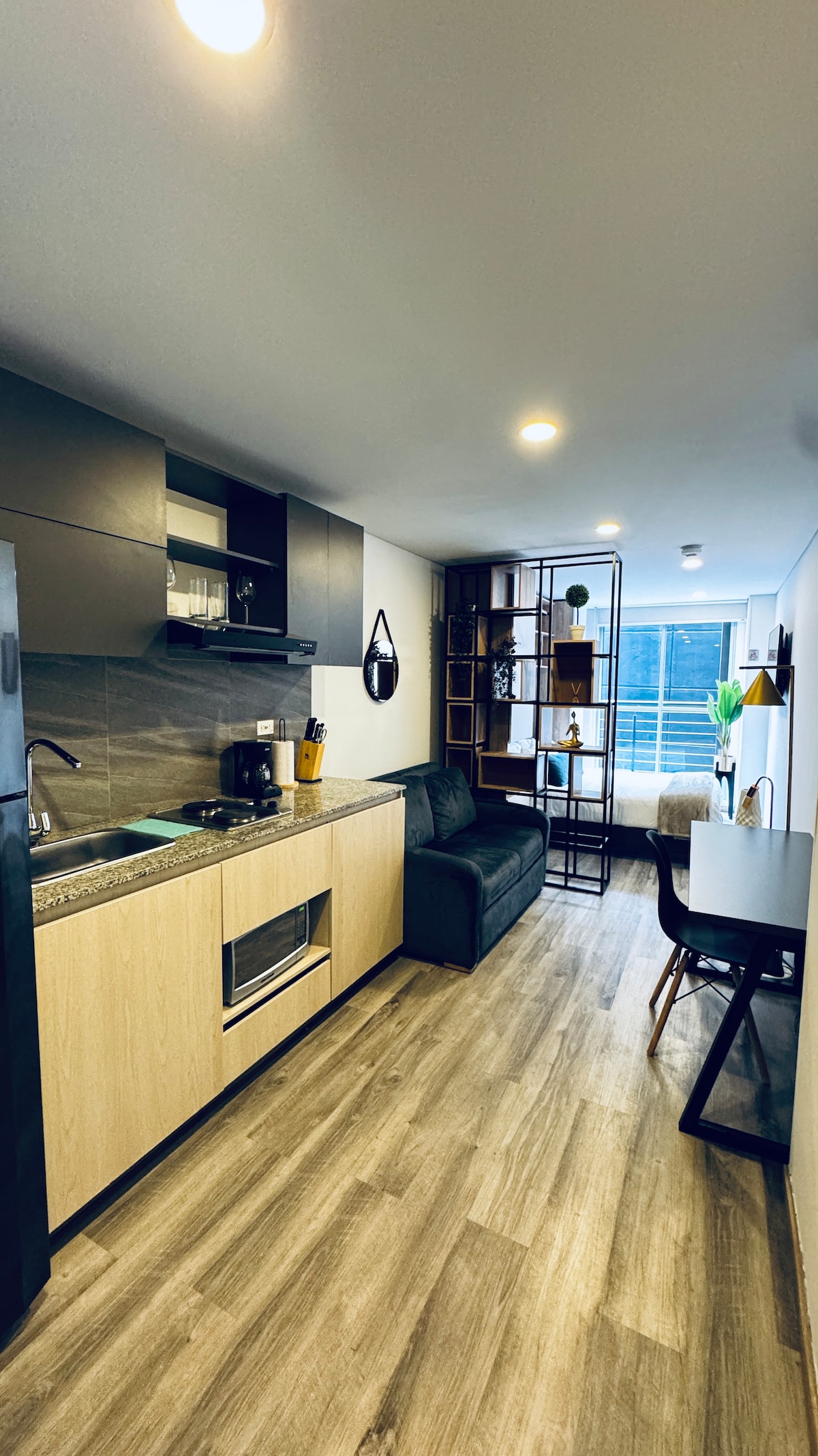 Disfruta de un moderno loft en una de las zonas más exclusivas de Bogotá. Ubicado estratégicamente a pocas cuadras de la Zona T, Zona G, y los principales centros comerciales como Andino, Atlantis y El Retiro, así como de la clínica del Country, este loft te sitúa cerca del centro financiero y de los mejores restaurantes, bares y sitios de entretenimiento de la ciudad. Ideal para estadías largas o viajes de trabajo y turismo. El edificio cuenta con un café-restaurante, co-working y terraza.