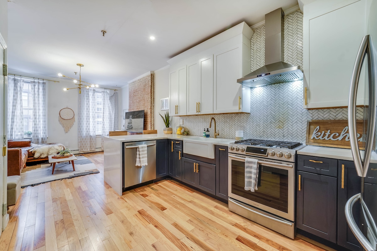 호보켄 도심 한가운데에 위치한 디자이너 침실 1개짜리 아파트입니다. 도보로 이동할 수 있는 호보켄의 수많은 레스토랑, 상점, 시장 근처에 위치하고 있습니다. PATH 기차역까지 불과 몇 블록 거리에 있어 맨해튼까지 쉽게 이동할 수 있습니다. 무료 와이파이, 대형 TV, 편안한 숙박 시설, 숙소 내 세탁기 및 건조기, 셰프의 주방, 스파 같은 워크인 샤워, 노출된 벽돌, 넓고 조용한 침실을 갖추고 있습니다.