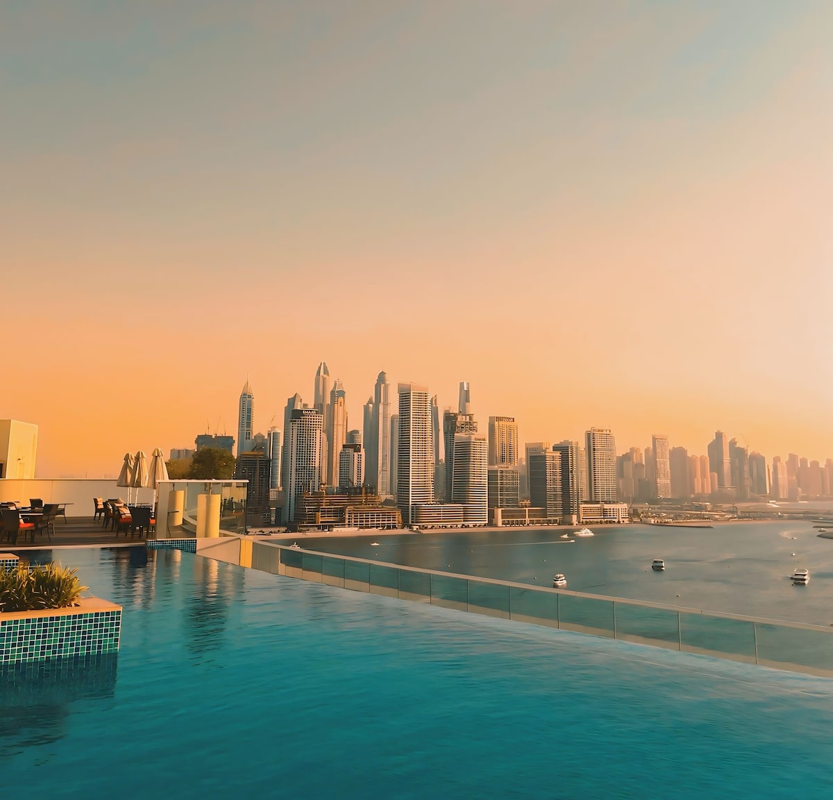 버즈 칼리파의 전망을 감상할 수 있는 최고층 인피니티 풀