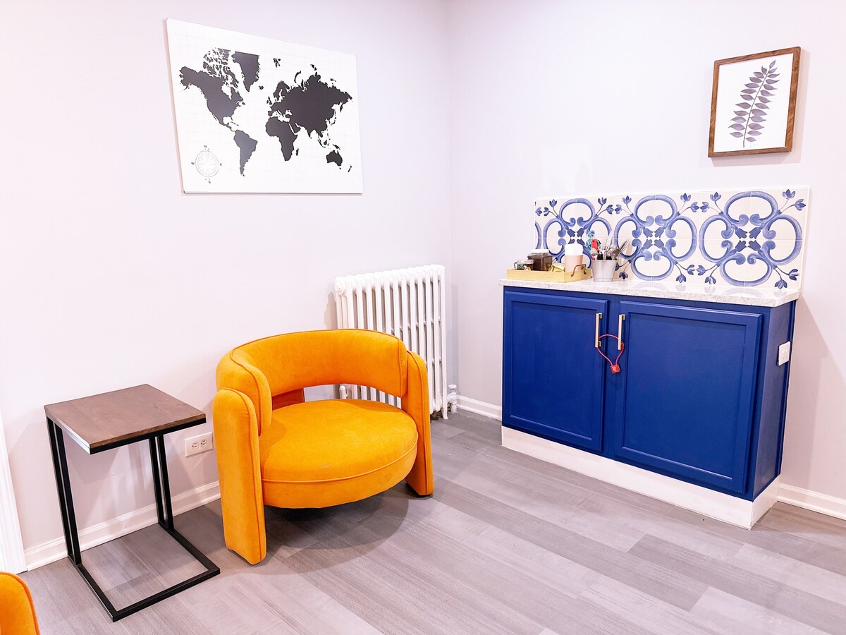 시카고 브론즈빌 지구 중심부에 위치한 재미있고 독특한 1베드 1.5욕조 스피크이지를 즐겨보세요. 이 예술적인 분위기는 절충적인 인테리어, 손으로 그린 벽화, 스마트 TV, 홈바, 웰니스 스튜디오, 원격 작업 공간, 무료 노상 주차, 1층 계단 없는 출입을 특징으로 합니다. 이 아늑한 공간은 재미있는 커플, 솔로 모험가, 출장자, 게임의 밤 애호가에게 적합합니다. 다운타운(매그마일, 네이비 피어, 밀레니엄 파크까지 6마일), 해변(1마일), 박물관, 스포츠 경기장까지 쉽게 이동할 수 있습니다.